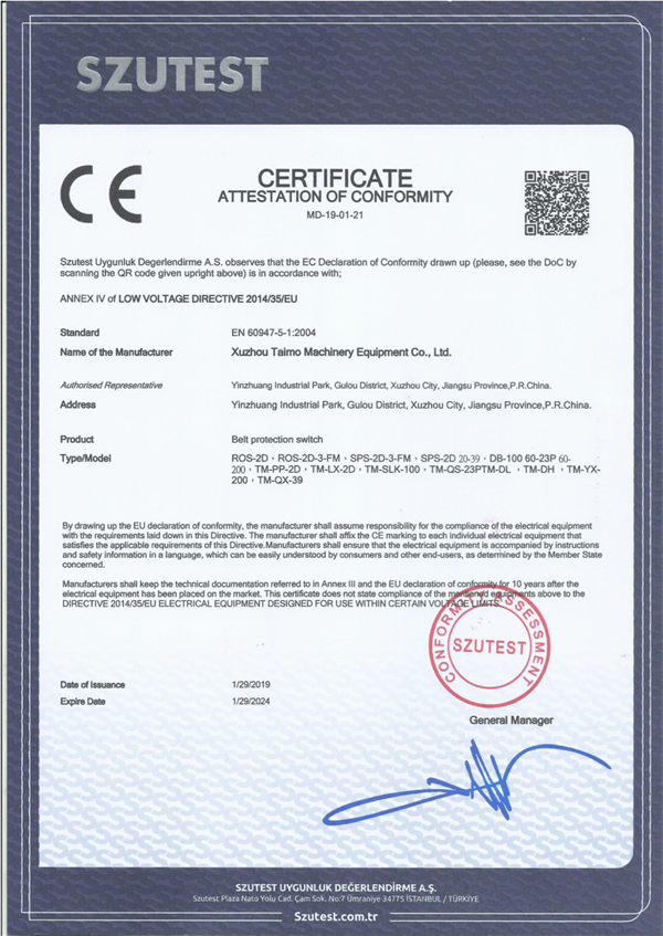 • 大連國(guó)際技術(shù)機(jī)械貿(mào)易公司定購(gòu)了176臺(tái)SPS-2D拉繩開(kāi)關(guān)